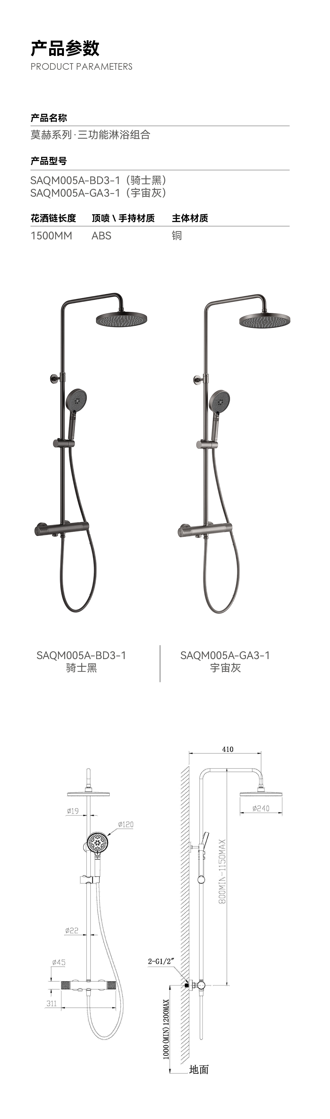 单把淋浴组合( 枪灰色 + 深灰色 )