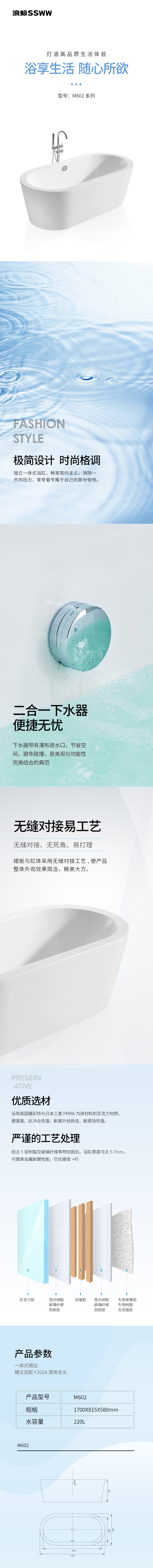 尺寸:1700×800×640mm 最大容量:320L 基本功能和配置:裙边氛围灯、零压云感人机设计、恒温、3功能无级调…